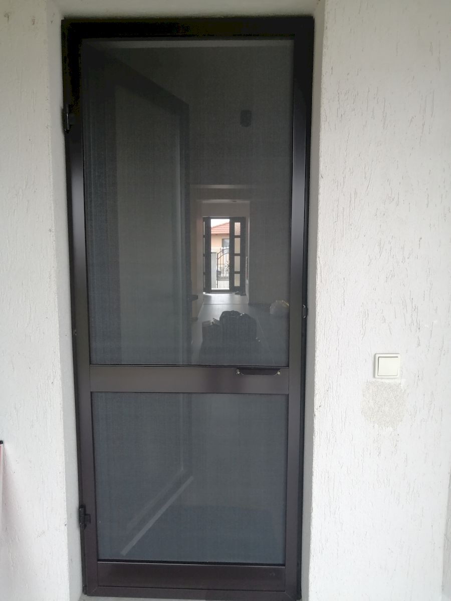 Plase insecte pentru usi / antiinsecte cu balamale cu autorevenire pentru uși este un sistem robust din aluminiu extrudat vopsit electrostatic.